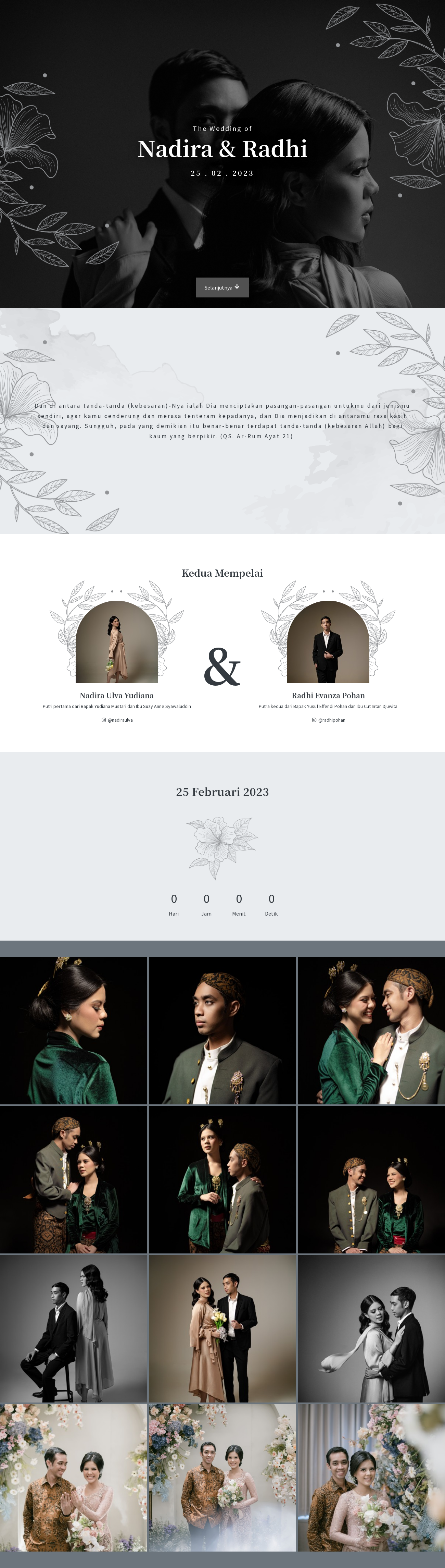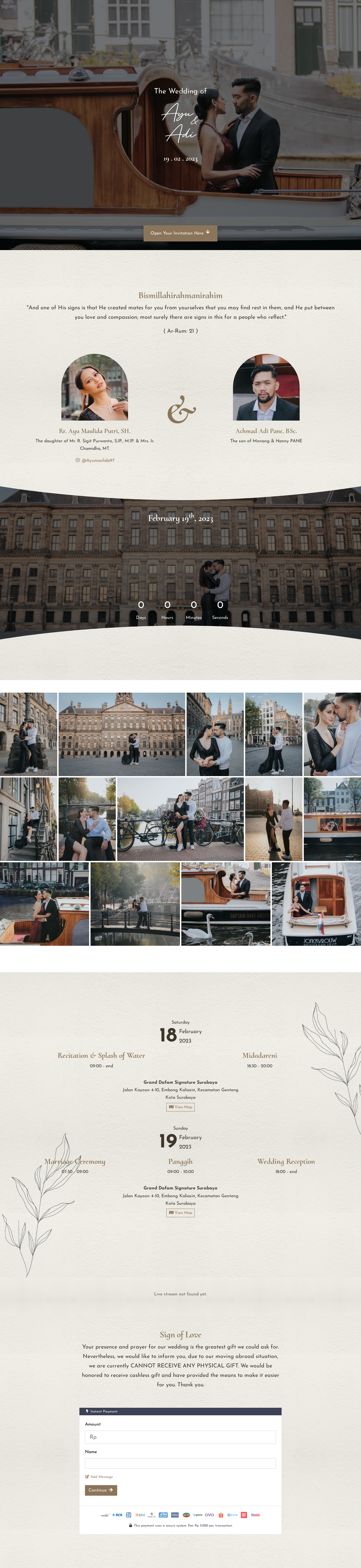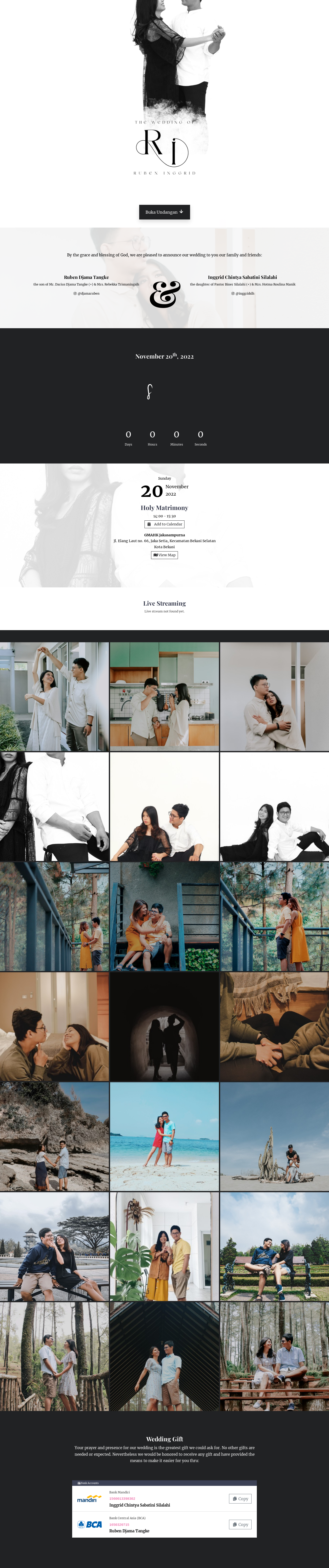 Dalam pernikahan undangan website ini sangatlah penting, mengingatnya keterbatasan mengirimkan undangan fisik dan memerlukan waktu yang banyak untuk membagikan undangan fisik / cetak. Maka dari itu saya ada untuk kita semua, dengan konsep exclusive, elegant dan minimalist yang memberikan kesan profesional